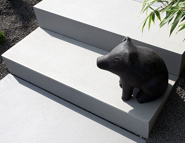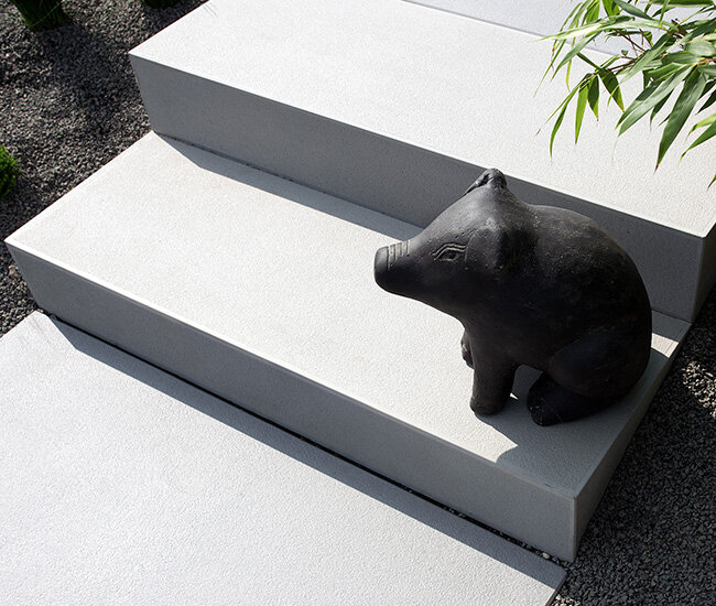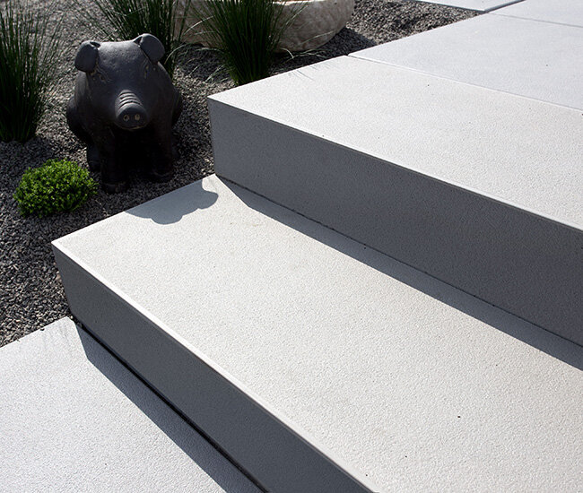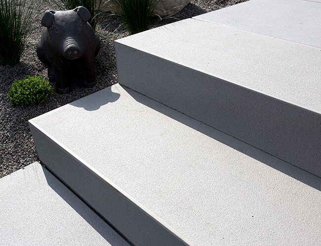 Edle Stufen in puristischem Design für Gartentreppen aus hochwertigem Sichtbeton.