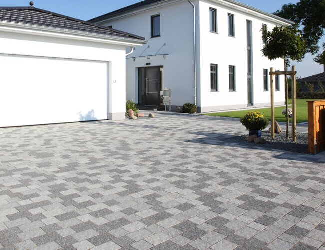 Optisches Highlight des Trento sind die unregelmäßige Kantenführung der Steine und die mit Edelsplitten versehene Oberfläche. Kombiniert verleihen die beiden Merkmale den Pflastersteinen eine ausdrucksstarke Note und repräsentative Gestaltung von Flächen aller Art. Die fein gestrahlte Pasand Betonoberfläche der Pflastersteine erreicht den höchsten Rutschwiderstand von R13, die Pflastersteine sind also jederzeit sicher begehbar.