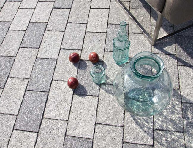 Das hochwertige Pflastersystem überzeugt durch seine edle Naturstein-Oberfläche, die mit einer sanft strukturierten Textur und unregelmäßig geformten Kanten eine besondere Ästhetik entfaltet. Die flexibel kombinierbaren Einzelsteine ermöglichen sowohl schlichte Reihenverbände als auch kreative Zierverbände – ganz nach individuellem Gestaltungswunsch.