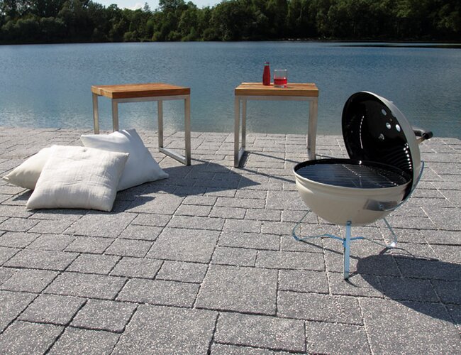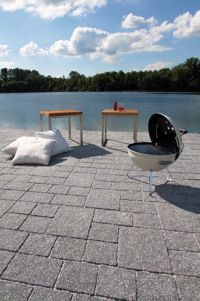 Für einen attraktiven Farbunterschied können auch alle drei Grautöne beliebig miteinander kombiniert werden. Dank des integrierten Oberflächenschutzes der Technologie b.c.s. der wie eine Imprägnierung wirkt, sind die Platten auch besonders leicht zu reinigen und sehr pflegeleicht.
