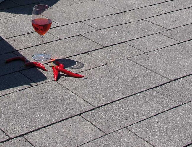 Ein vollumlaufendes Abstandhaltersystem an jedem Stein sorgt zum einen für die nötige Flächenstabilität und macht sorgt für eine Abflussmöglichkeit für Regenwasser, da eine Mindestbreite der Fugen eingehalten wird. Ein integrierter Oberflächenschutz der Technologie a.c.p. minimiert darüber hinaus den Reinigungsaufwand und lässt Dreck von der Oberfläche des Betonpflasters abperlen. So bleibt der edle Look lange erhalten bei sehr geringem Aufwand. Die Via Tagona steht in drei Farben zur Verfügung, den beiden Grautönen sophistograu und achatgrau sowie im hellen oysterbeige.