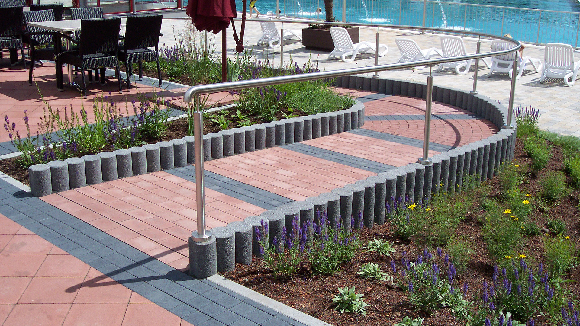 Midi-Verbundpalisaden sind eine wirtschaftliche Alternative, wenn es um die Einfassung von Böschungen, Beeten, Rabatten und Grünanlagen geht. Die runde Form ermöglicht gerade und geschwungene Linienführungen. Eine Verbundkehle erzeugt eine sichere Scharnierwirkung der Palisaden untereinander und sorgt für zusätzliche Stabilität. Verbundpalisaden sind als Hohlpalisaden ausgebildet. Ihr vergleichsweise geringes Gewicht macht sie leicht handhabbar.